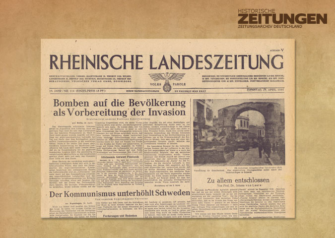 Was stand am 25. November 1943 in der Zeitung? Welche Schlagzeilen und Nachrichten vom 25.11.1943 hat Deutschland und die Welt bewegt? Schenken Sie eine Zeitreise zurück zum Tag der Geburt oder dem Hochzeitstag - mit einer echten, alten Tageszeitung oder Zeitschrift genau vom 25.11.1943.